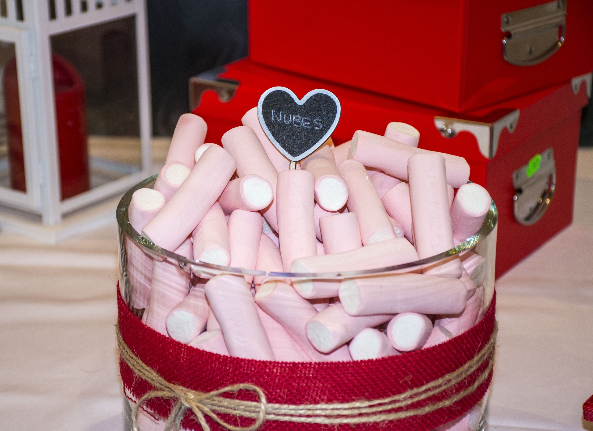 Cubo con 200 nuves y letrero de pizarra. Ideal para mesas dulces, decoración de eventos y centros de mesa